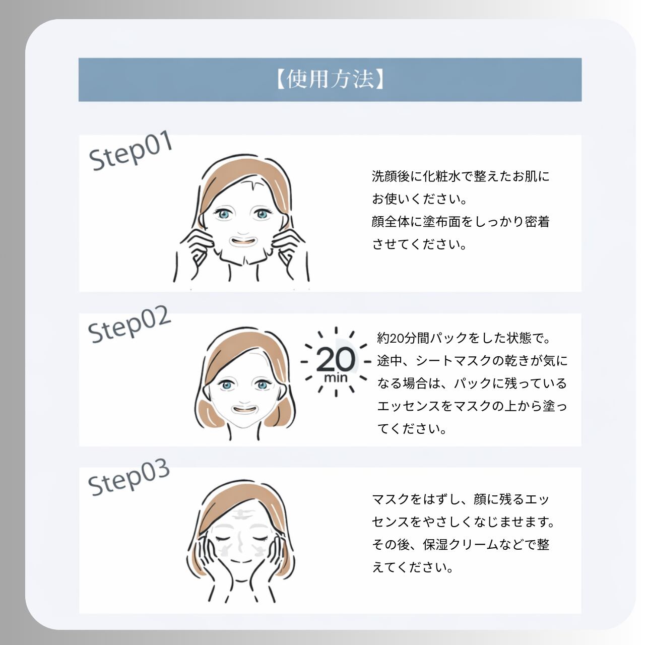 ③マスクをはずし、顔に残るエッセンスをやさしくなじませます。